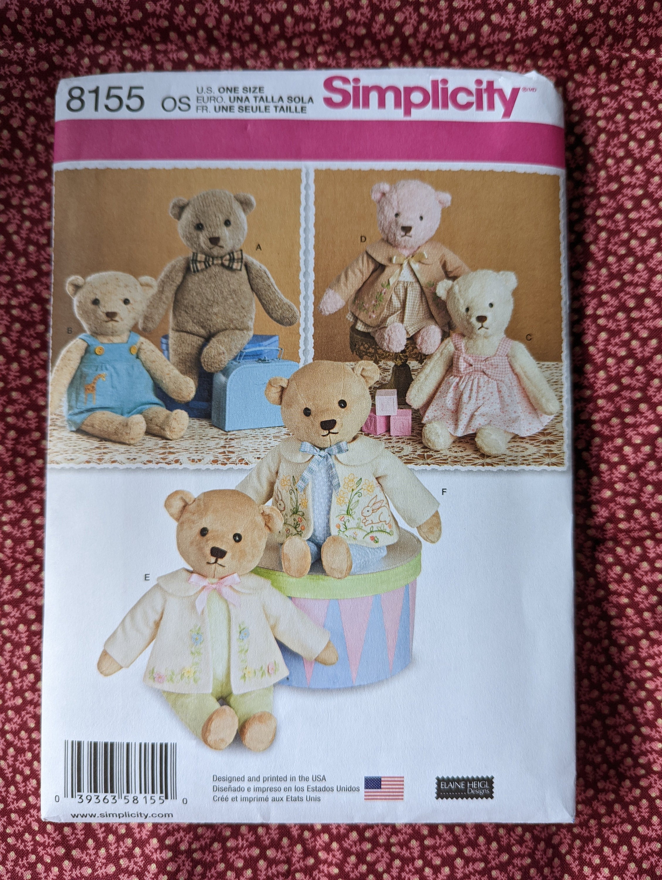 Simplicity 8155 Teddy Bear Pattern Etsy